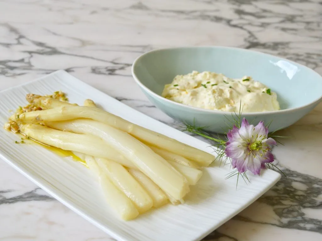 Another way of cooking asparagus is to simply boil them. My advice is to start the cooking by dipping the asparagus in the boiling salted water and not in cold water. Regularly check if it is ready with the tip of your kitchen knife. When the blade goes through the asparagus as if in soft butter, that means it’s ready.